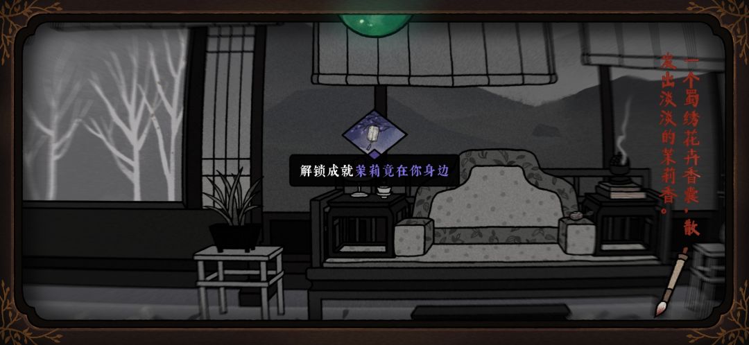 本着撩妹原则我送她在杂货铺买的茉莉香囊后,再去花公子家镜子一看沙发上竟然…竟然…然后描红后得到成就…终究是错付了…