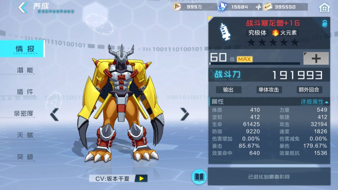 果实升阶加成:以成长期为分化,不同成长期加成不一样,部分宠的成长期和成熟期,与完全体和究极体 有细微差异,但是进化后依然以进化后的标准为主,所以可以说每一个宠都些许不同,提升加成与等级多 少无关,注意百分比提升参数会影响结果,但是基础不变.