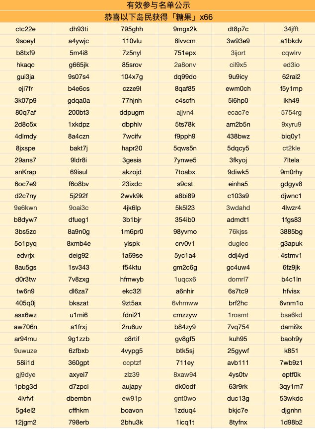 随机抽取共88位成功参与的岛民送出糖果66颗
