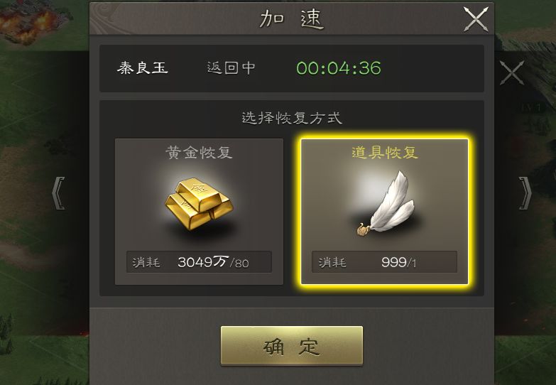 战场上的一分一秒都至关重要,调遣部队需要大量时间,再加上城池陷阱,城池之间的行军可能要花上几个小时的时间。这个时候就轮到道具【飞羽符】出马了,它可以使处于返回状态的英雄立即抵达首都,整装待发,及时投入下一场战斗。