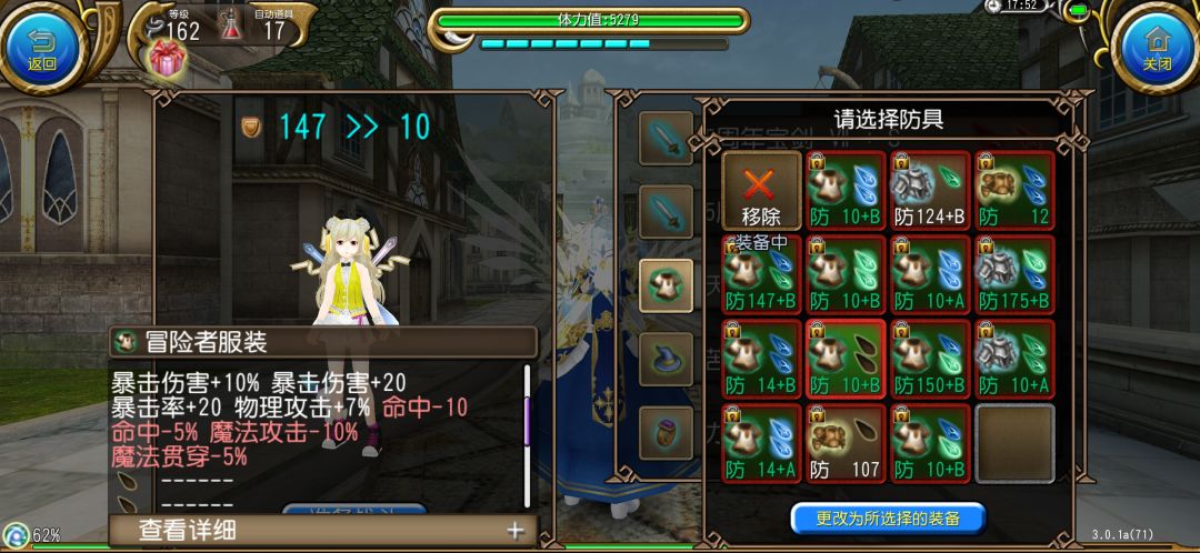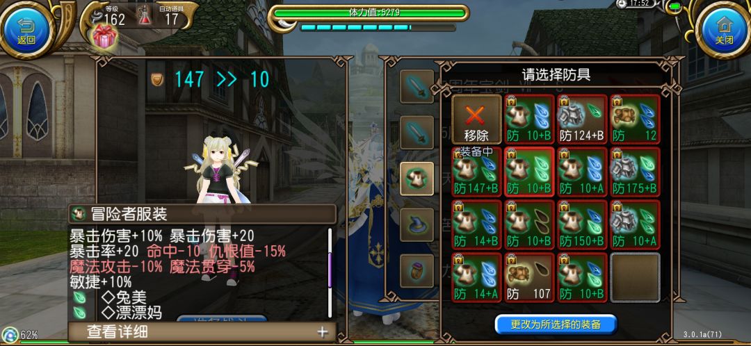 第二件是双剑和拳套职业用的衣服,属性与第一件有差距,优势是自带王石,带的王石可以加1000蓝,萌新之友。