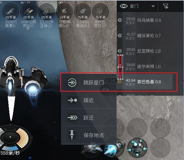 4、在跃迁起点被拦截:开隐秘行动,点击过来的星门跳跃回去,俗称反冲星门。然后过一段时间再尝试或者直接绕路。