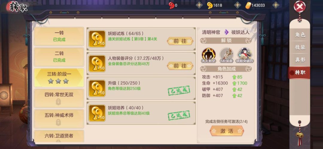 完成这4个任务后,在角色界面点击转职,再点击左侧的激活,击败Boss即可完成三转任务。那么这4个任务要如何完成呢?