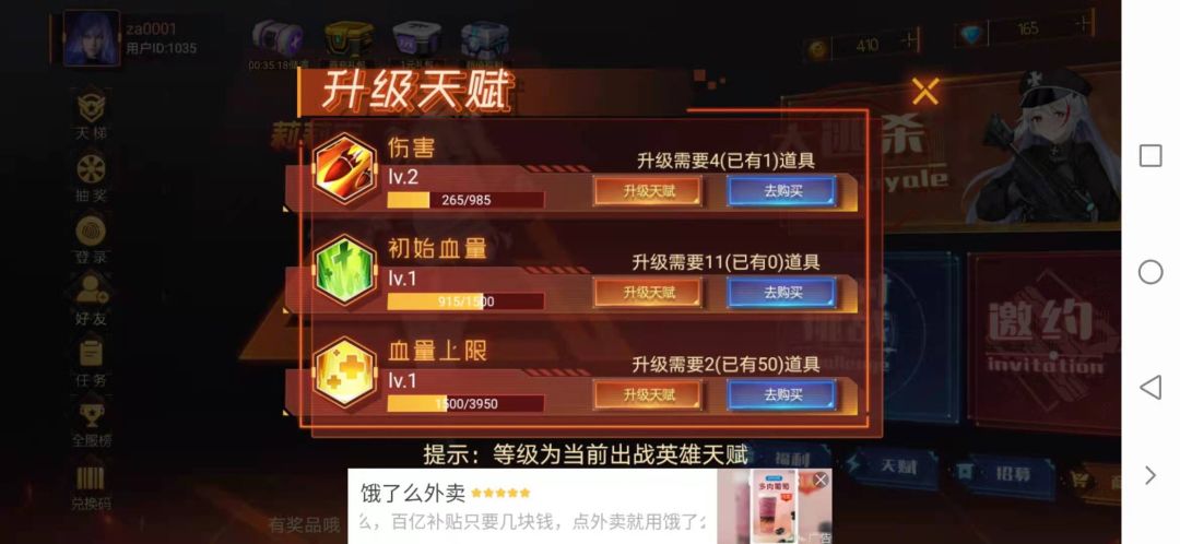 天赋方面:伤害值,初始血量,血量上限