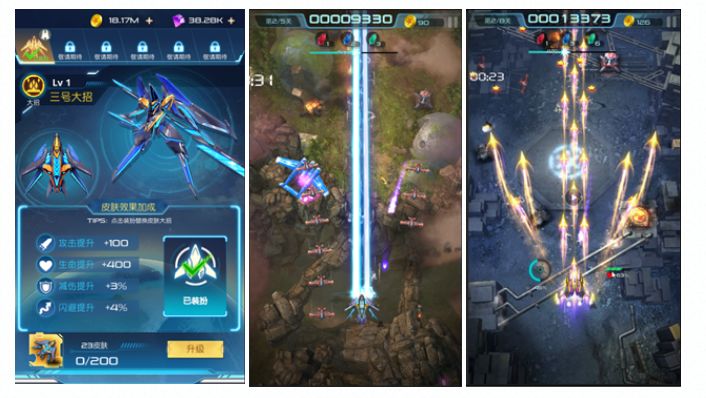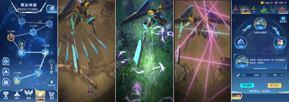 新增【神域机甲】系统,玩家可在战机界面内查看。激活机甲后将拥有:改变战机外形、增强战机弹幕、战斗中变身“机甲”形态,等三大功能。其中机甲形态在保留战机机动性的基础上,大大增加了防御以及凌驾于任何战机的火力输出能力。