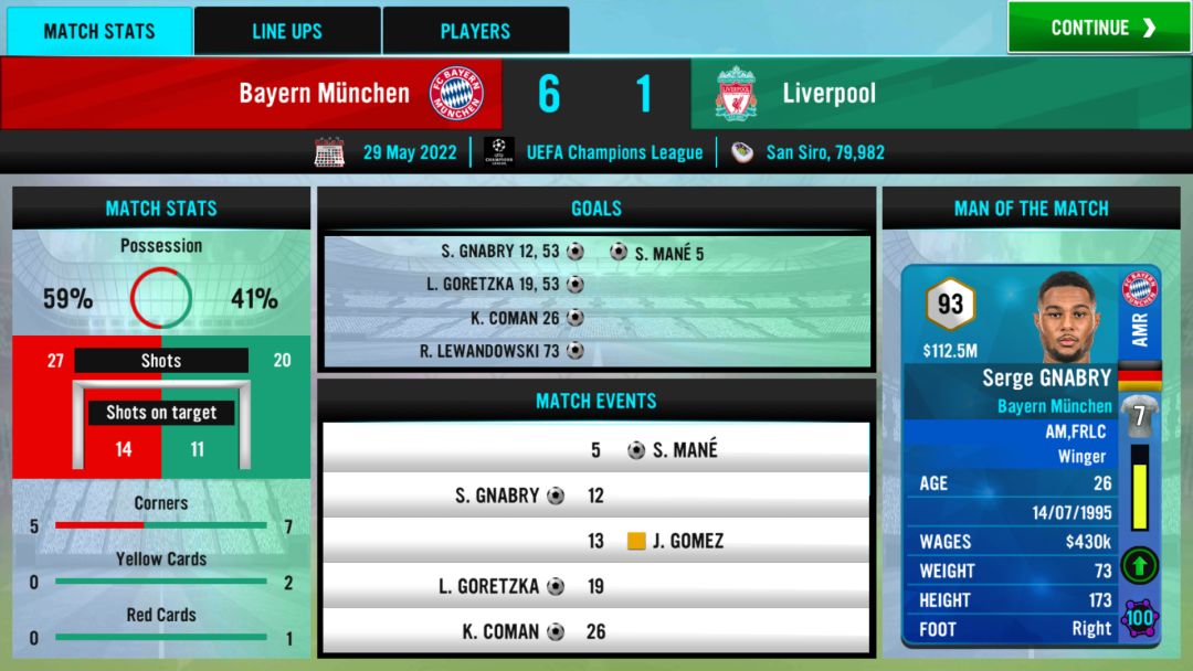 12、欧冠赛场,再次在决赛制造惨案,6-1利物浦,取得欧冠两连冠,连续两届在决赛制造惨案(20/21赛季欧冠决赛拜仁7-2国米)