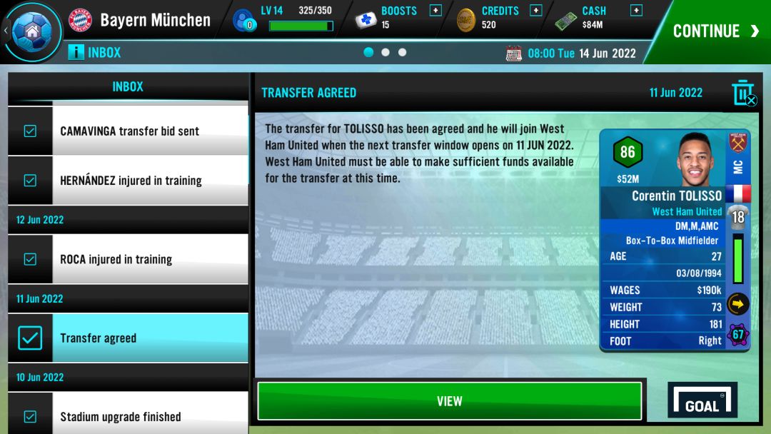 14、西汉姆联报价托利索,托利索这潜力涨到86就到头了,还是卖了