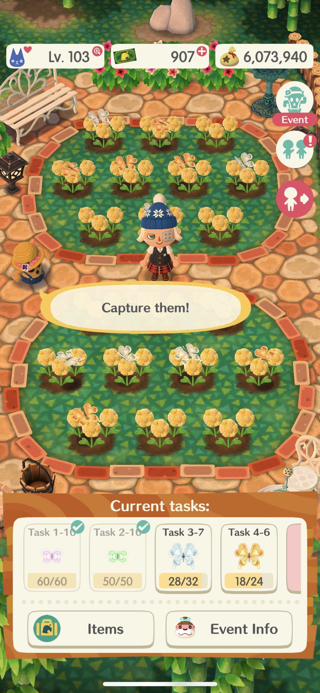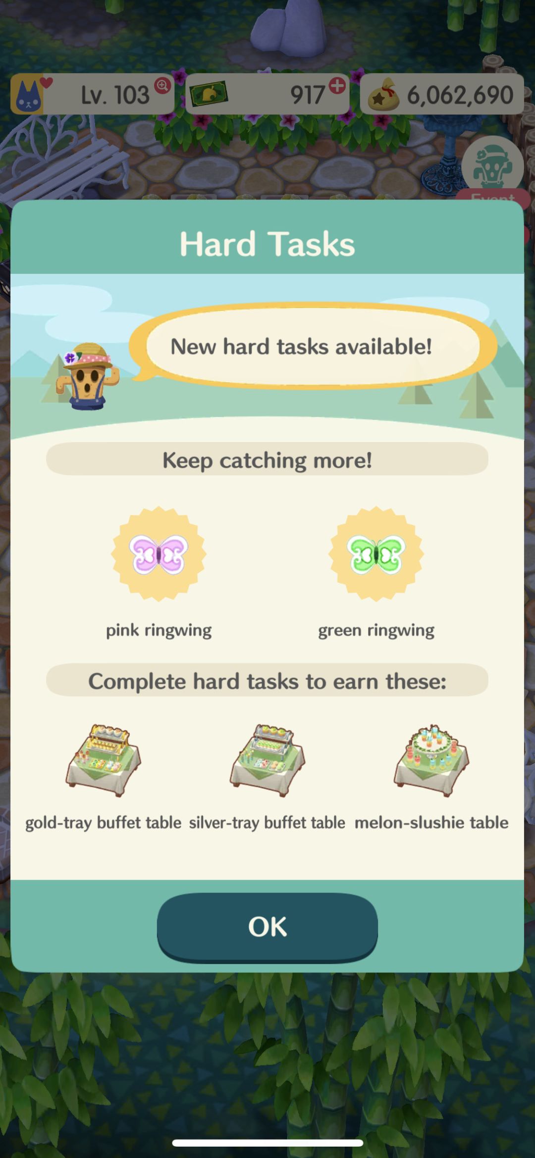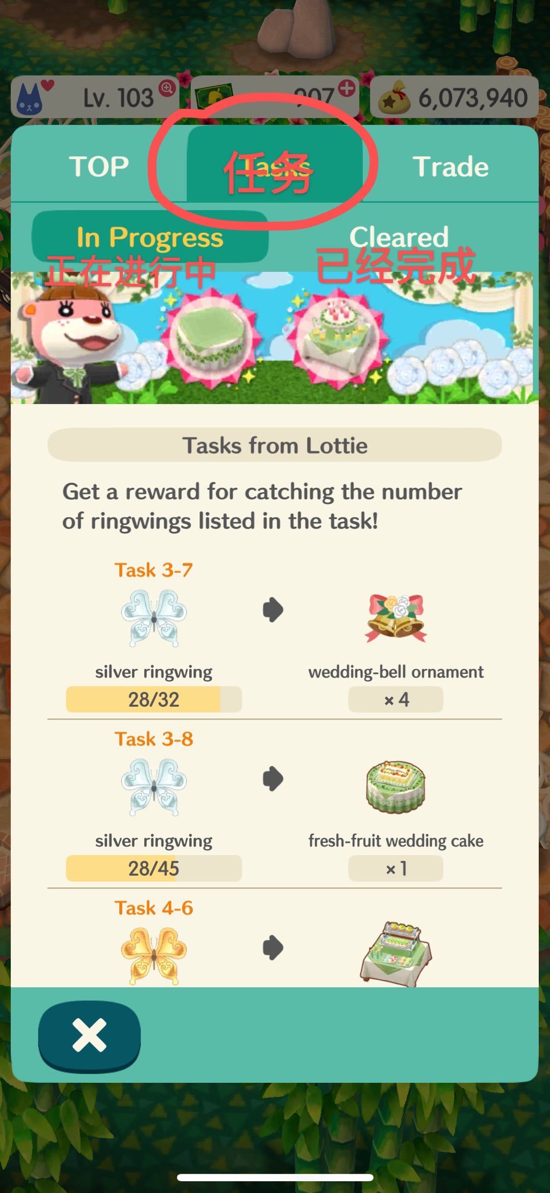 我们可以看到目标在下面一栏:我们可以看到需要的蝴蝶数目,后面还有hard tasks,要完成现有的所有任务,才会开启