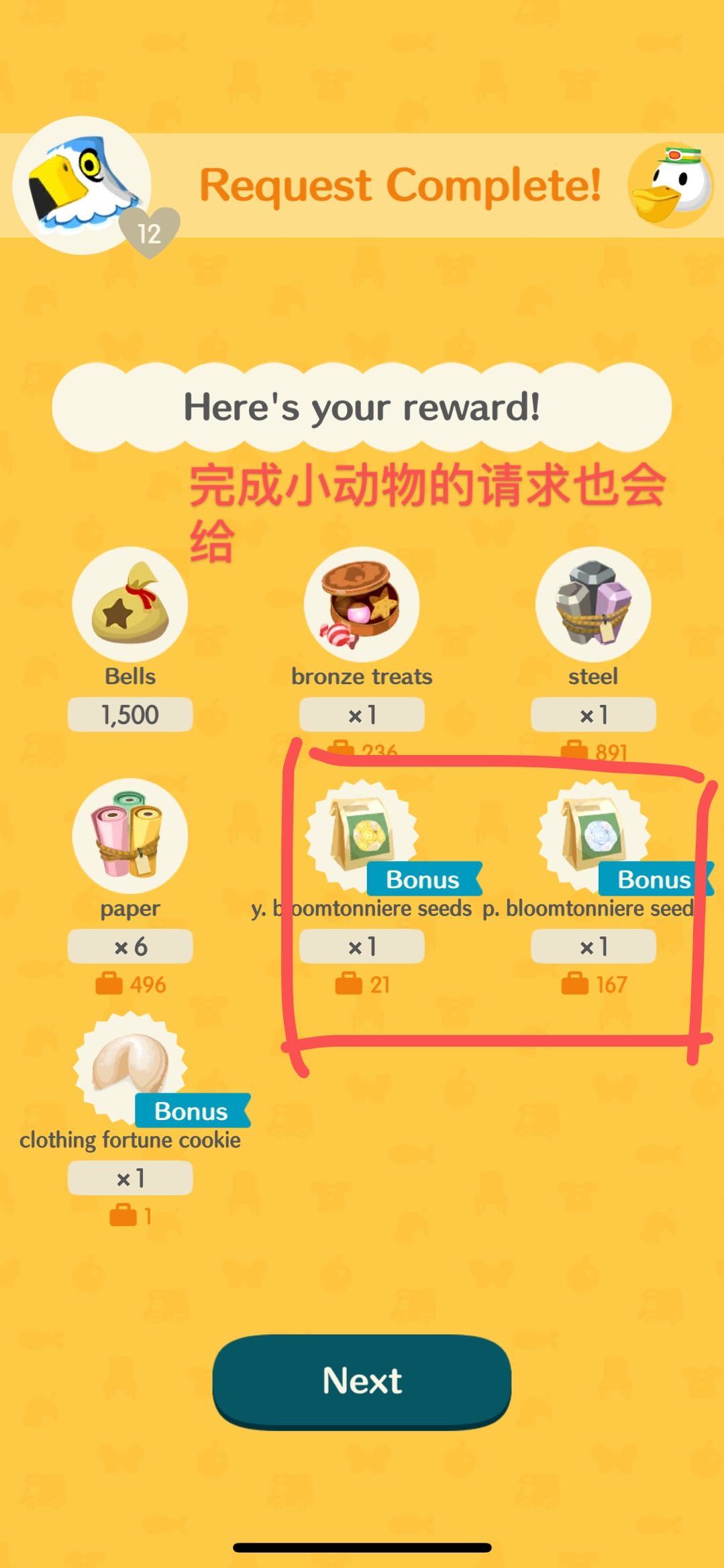 2. 完成小动物的请求(只有四个资源岛上的小动物才会给哦)