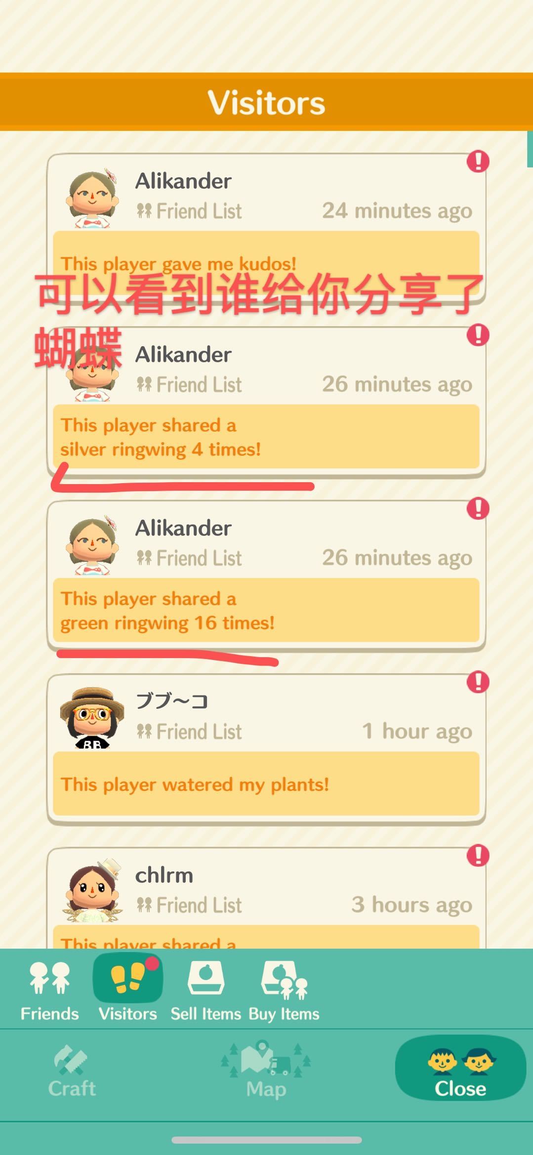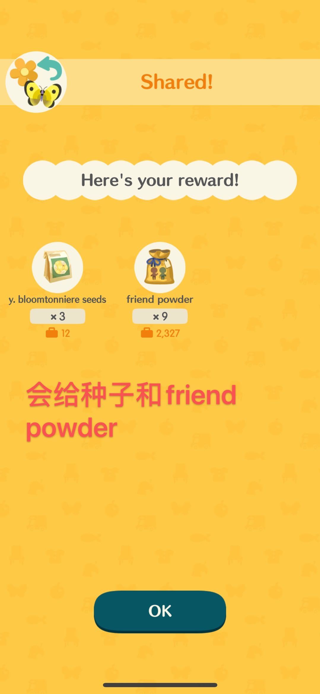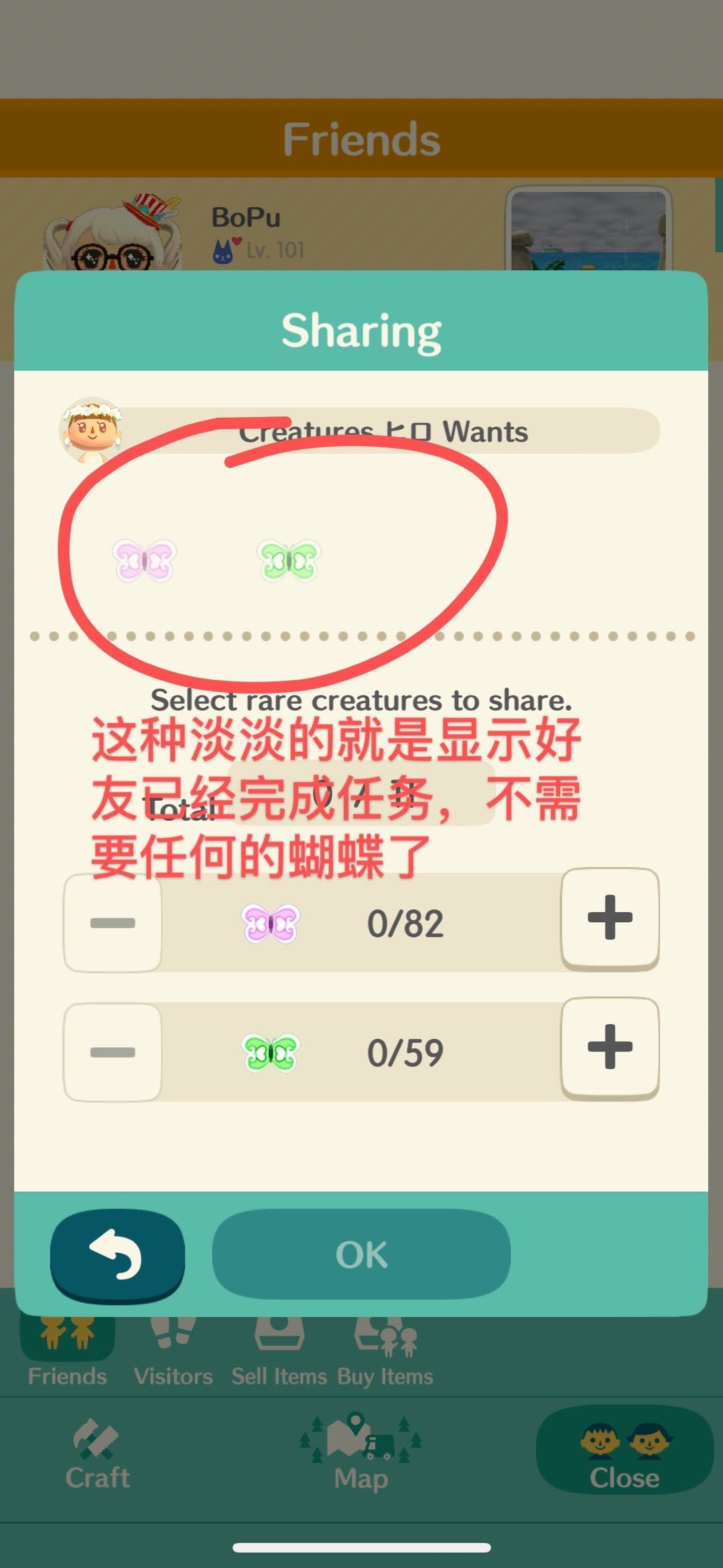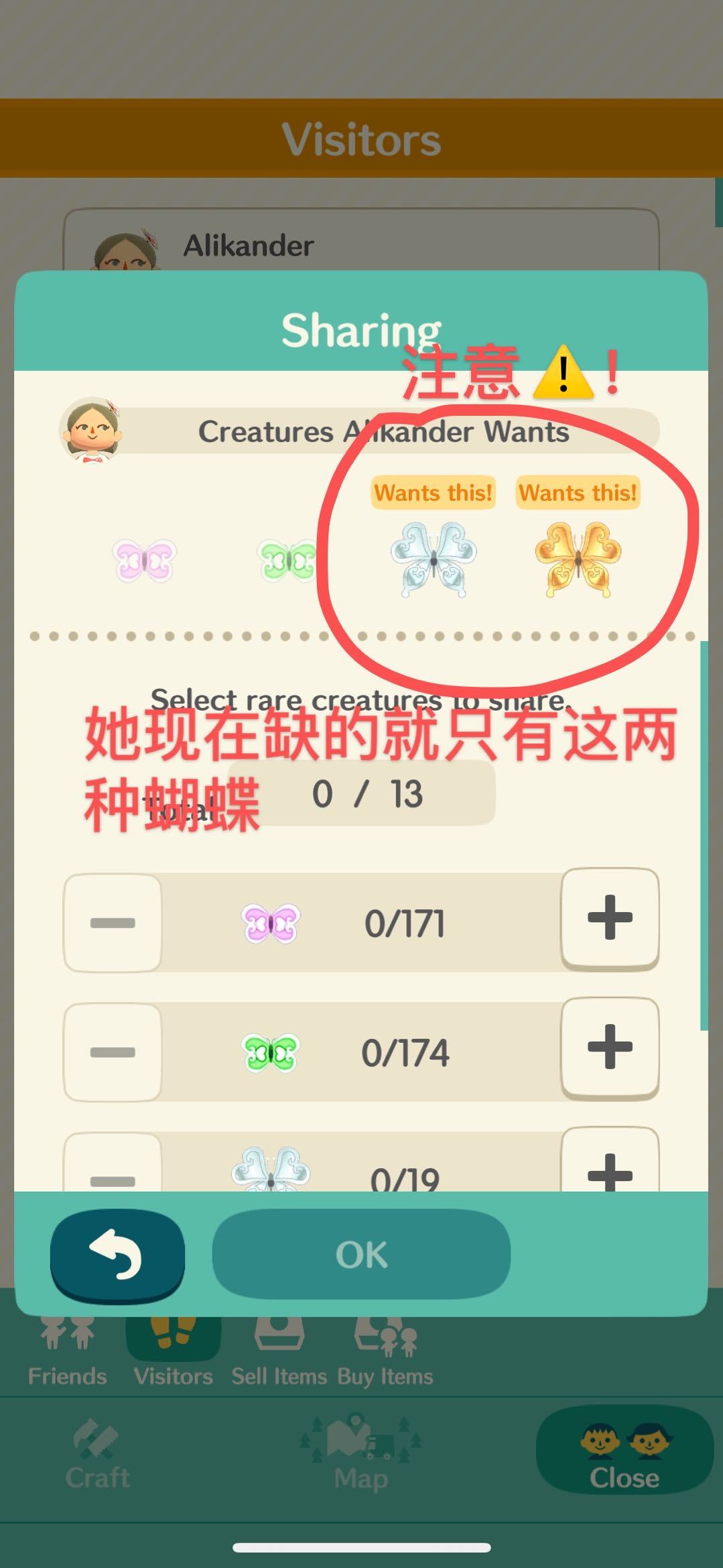注意⚠️!!要看清好友现在缺的是什么样子的蝴蝶, 需要的蝴蝶,会有 wants this 的字样