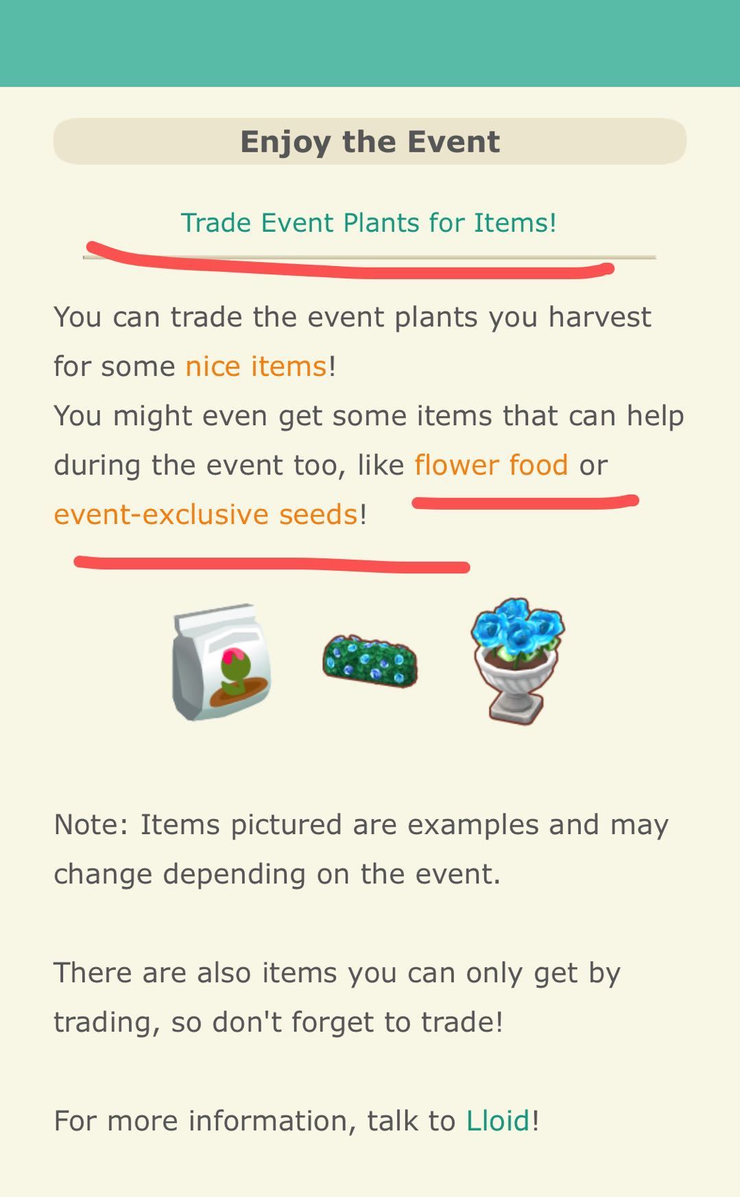ps: 此活动的黄色花卉不能在lloid处买到,但是可以交换获得,