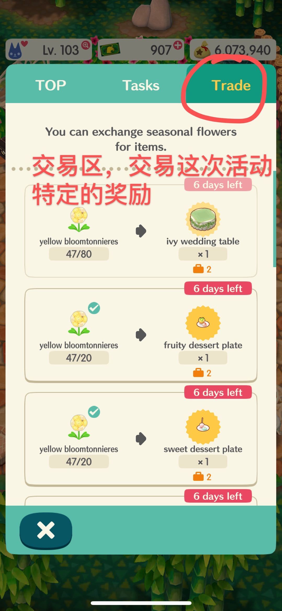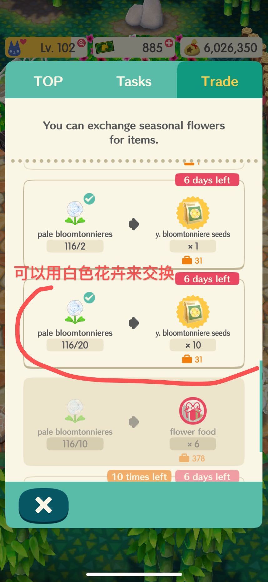 我们可以用花卉来交换 flower powder ,种子,以及特殊的活动家具