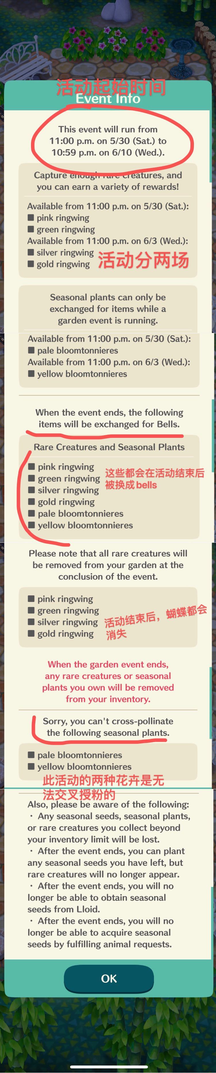 注意活动结束后,虫子们和稀有植物都会被回收成bells