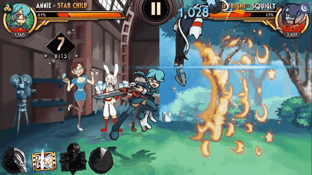 另一方面是因为《罪恶装备》的新作,那种有限帧的动画调教方式,让我一下子就想到了《骷髅少女》。个人对美漫风格其实不太感冒,但《骷髅少女》对风格的动态化处理做得相当好,人物本身就是夸张的,而有限帧的处理方式,能把这种夸张感放大,一招一式间把格斗之美展现得淋漓尽致。