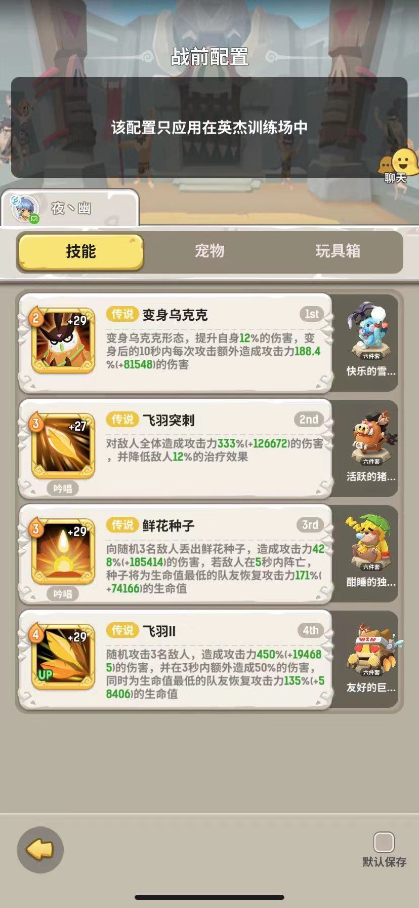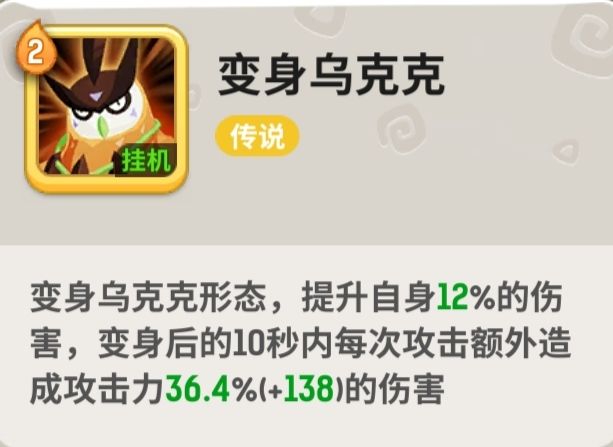 变身乌克克,小德的输出核心技能,前期用处相对较小,前排生存压力较小的情况下可以替换补输出使用,后期用途更大,后期主线前排没有生存压力。