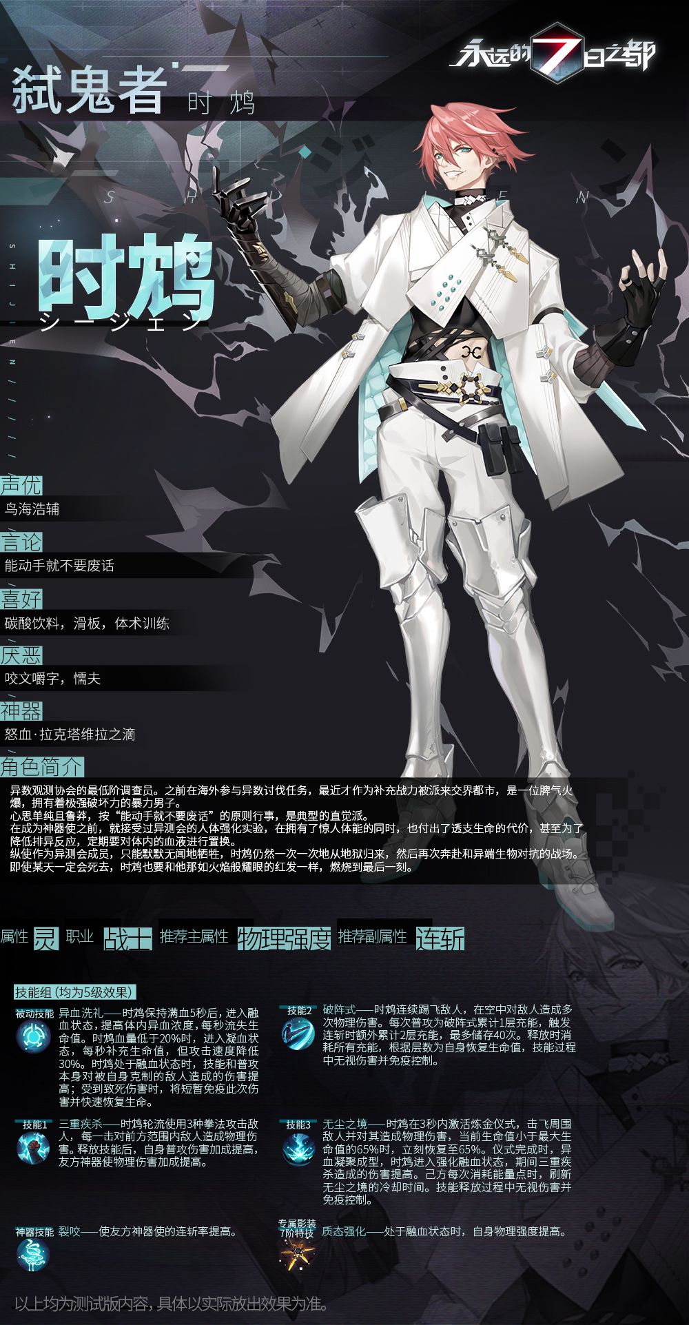 新神器使——时鸩、席琳情报资料&动态图透公开!