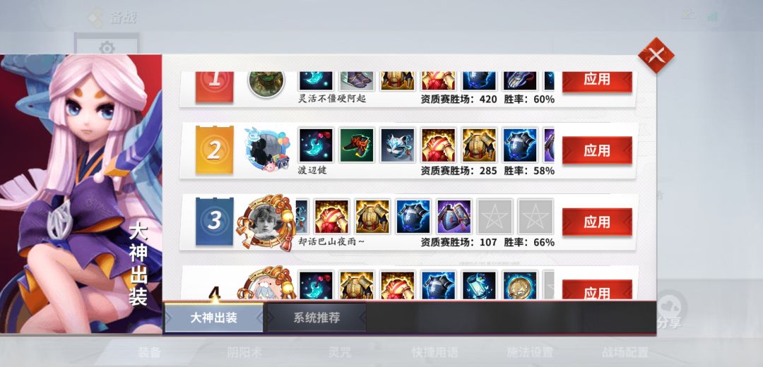 看到没?二三这是一样一样滴一个,只是排名问题而已。大神出装,建议这套,劣势阔以武神换火甲,帮忙推线,控制多中后期鞋换魔抗鞋,对面ad强?没事,就这个鞋,不用换。对面ad杀疯了!那,那换吧。![[嗒啦啦2_冷漠]](https://img.tapimg.com/market/images/9c291e4289780e05a678b98deef7b130.png)