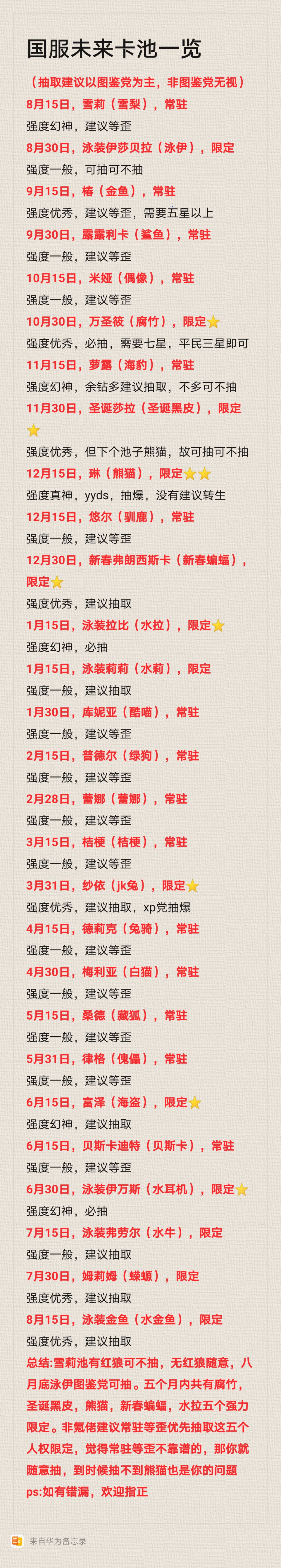 国服未来卡池一览
