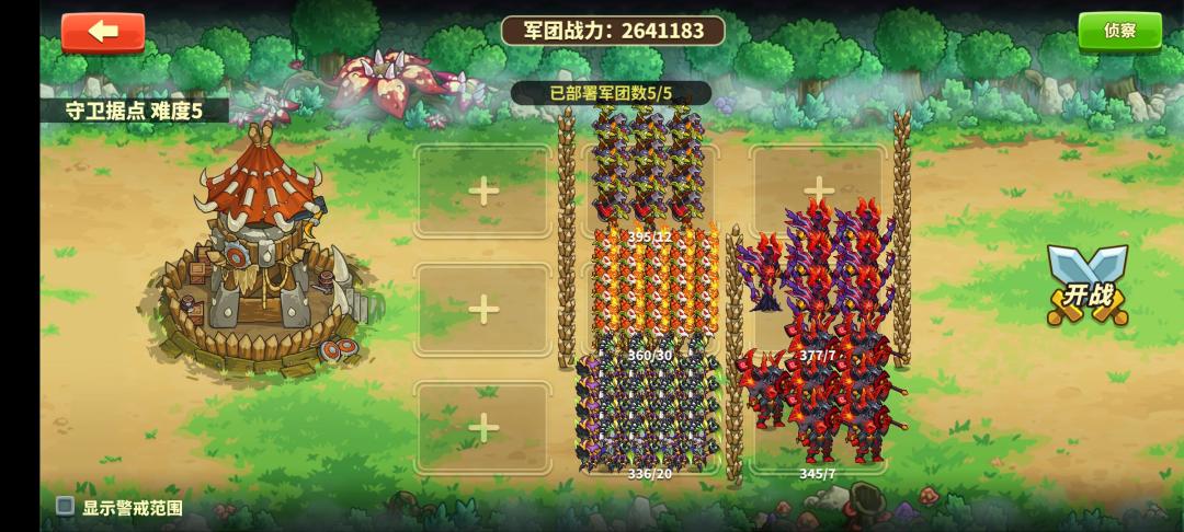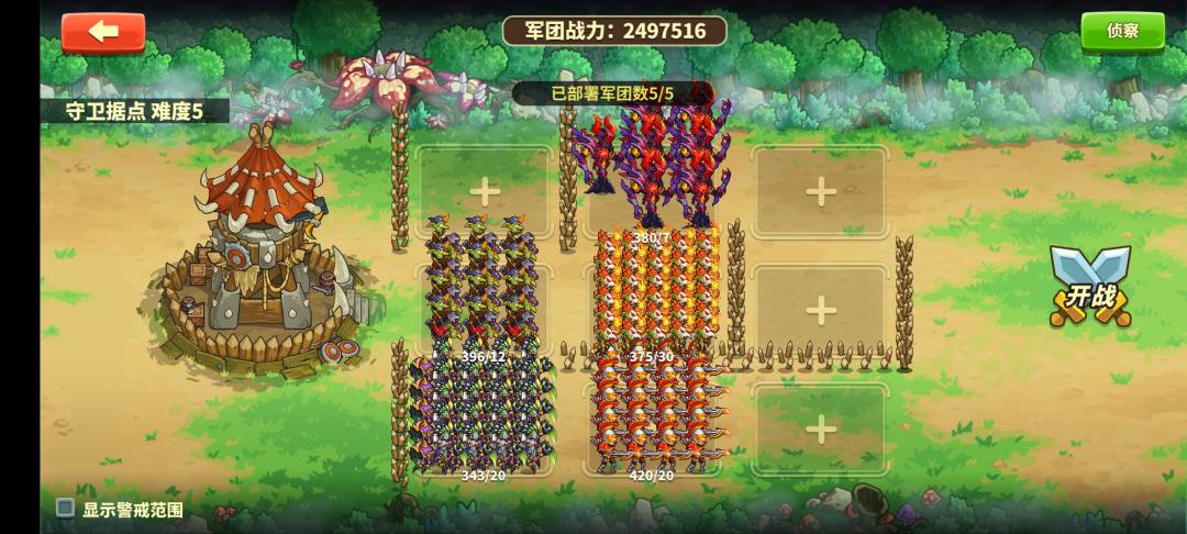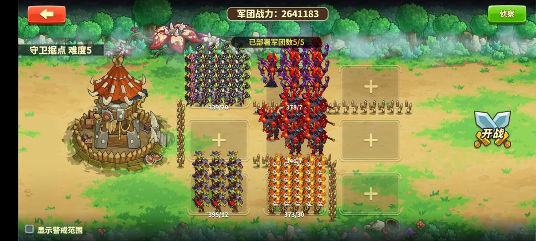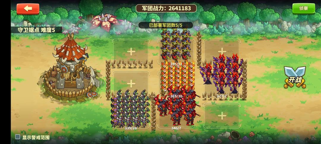 特别提醒:中途可以进行换人换阵型的操作,担心5队打不过还可以中间轮换6-7队轮着上。 后期建筑等级高了兵多了就越来越简单。