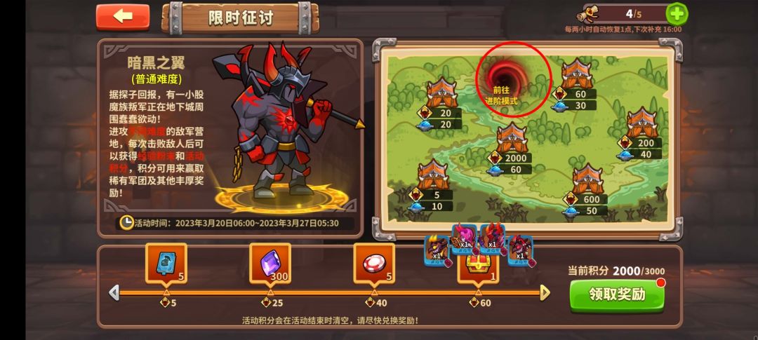 限时征讨的话其实每个难度都有一个推荐战力,一般到了那个战力就可以打的过(哥布林除外,哥布林只有碾压跟被碾压)