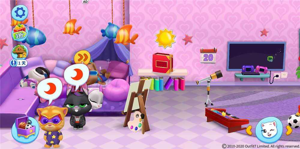 玩了这么久游戏,我发现了一个连锁反应。当六只中有一位困了想睡觉的时候,你带它去大沙发睡觉后,另外五只小可爱就会陆陆续续出现“弯月”。这可以说是心灵相惜吗?