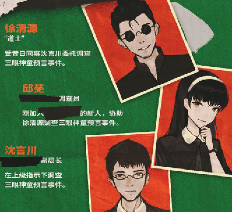 根据调查,我猜测事件和三眼神童有关。另外我们遇到紧急情况,预言在变成现实!不知能否救下被预言死亡的人!”