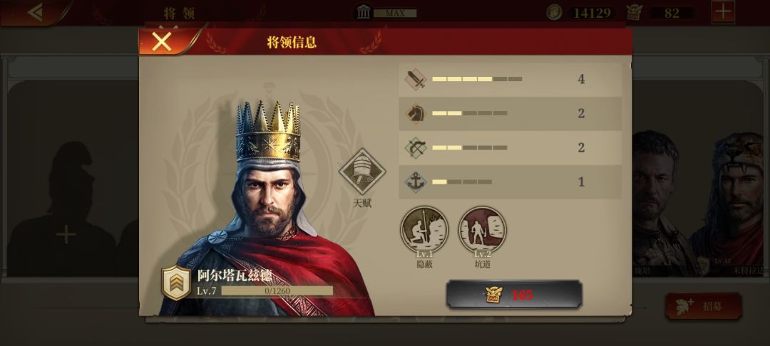 属性方面:三人作为铜区的高级将领,基础属性自然是远超上面的那些低级将领了。虽然希律王和陈汤在主要职业上属性并不高,但是他们海军和做任务方面还是非常给力的。