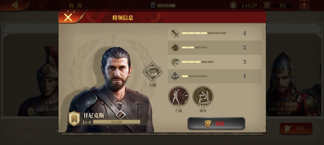 属性: 所有人的属性都差不多,因为是低级将领,基础属性都不算太高,无论是专业还是做任务方面,都无法取得太大的成就,甘尼克斯倒是可以勉强抵达七星。