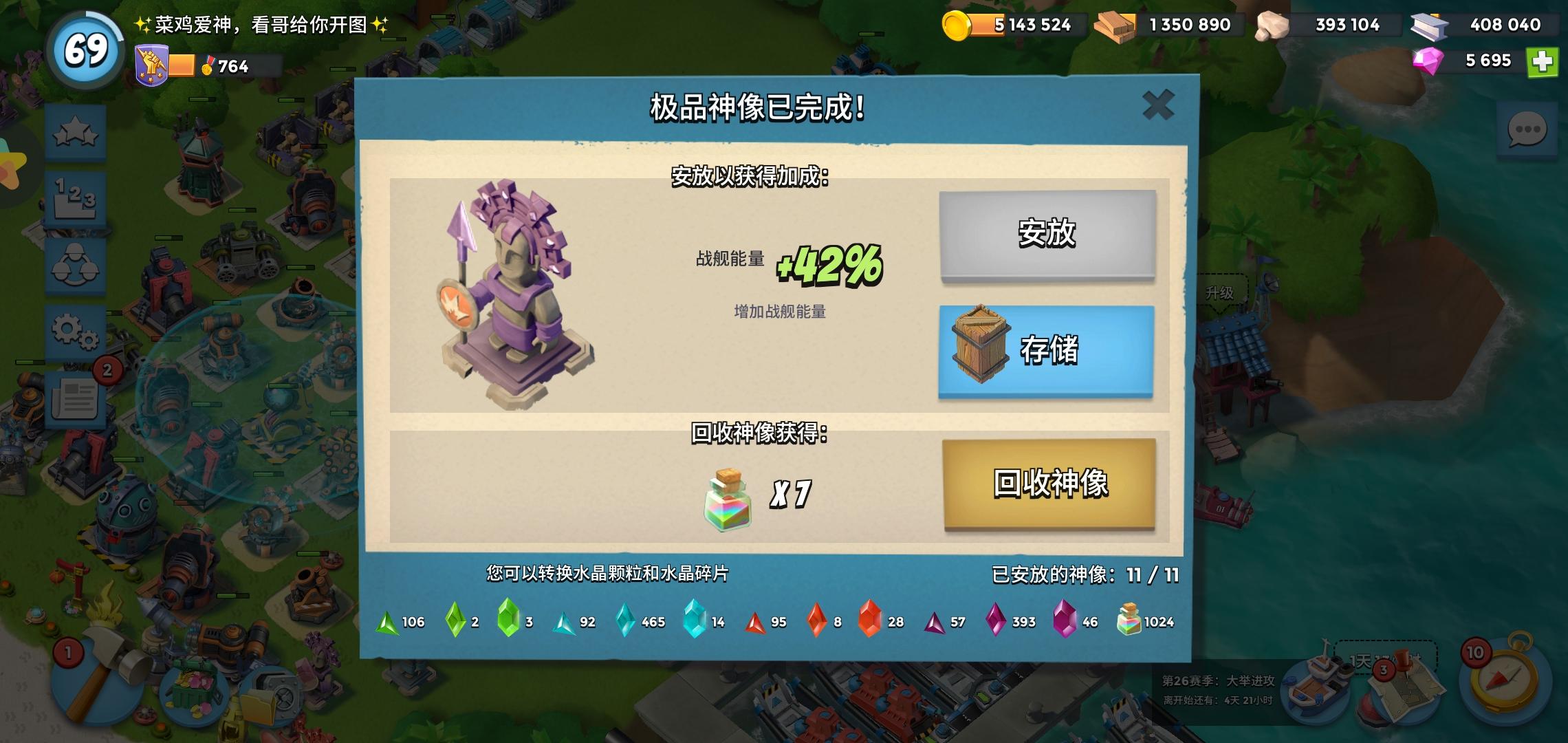 69级的四年老玩家,终于开出了满属性能量紫雕(撒花🎉🎉🎉),那个+37%的紫雕已经陪伴了我一年半了,今天它可以退休了