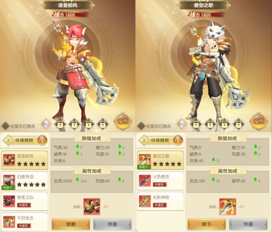 该部分主要包括战力、等级、属性等。其中,属性分为基础属性与极品属性,而基础属性,包括攻击和生命等,直接决定了角色的战斗数值。极品属性,包括伤害加深等,则更加偏向buff,能够在战斗时祝你一臂之力!