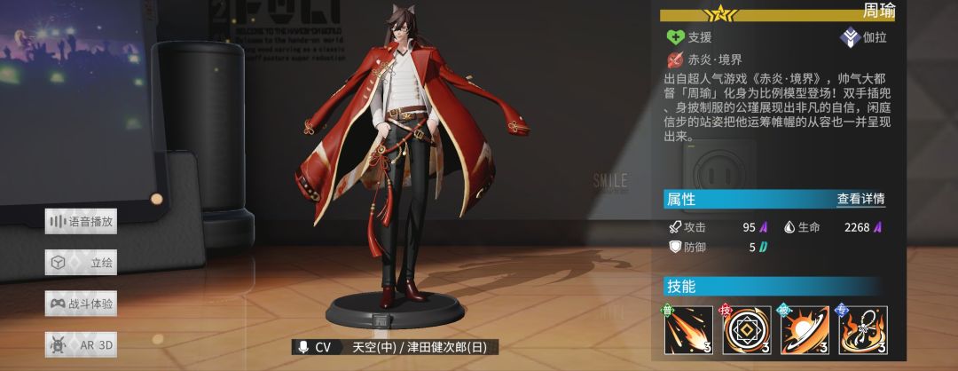 评价:周瑜普通攻击有几率点燃当前敌人。为什么周瑜能光荣垫底-因为局限性啊!相比海伦那效果全队全职业收益,周瑜加成的普攻攻速就挺坑了,首先重装和辅助对这个加成就很没意思,就连输出看着东西都头大,这加成远不如其他辅助带来的收益,能真正和他配合的也就赵云和蓝宫本了,所以周瑜在前期开荒非常好用,然后越打越疲,最后成功垫底。至于而其收益过低,点燃还有个低星孔明顶着,所以后期基本仓库呆着。