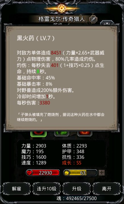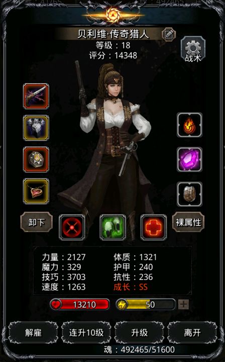 传猎注意计算命中率,命中满了就不要堆了,堆多点体质,20000+血较好,我的魔石是带命中的,狂暴洗不出来,战利品堆的物理伤害+体质+力量,把力量控制在3000内保证力速比。
