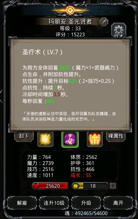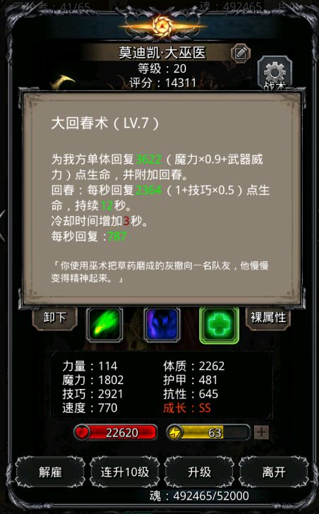 祭司重要属性是技巧>血量>奶量,因此用冥心比用死灵之书好,当然力速比是比较差的,能boss打一轮加一次血已经差不多了,战利品用流浪剑客徽章和技巧+回复的。