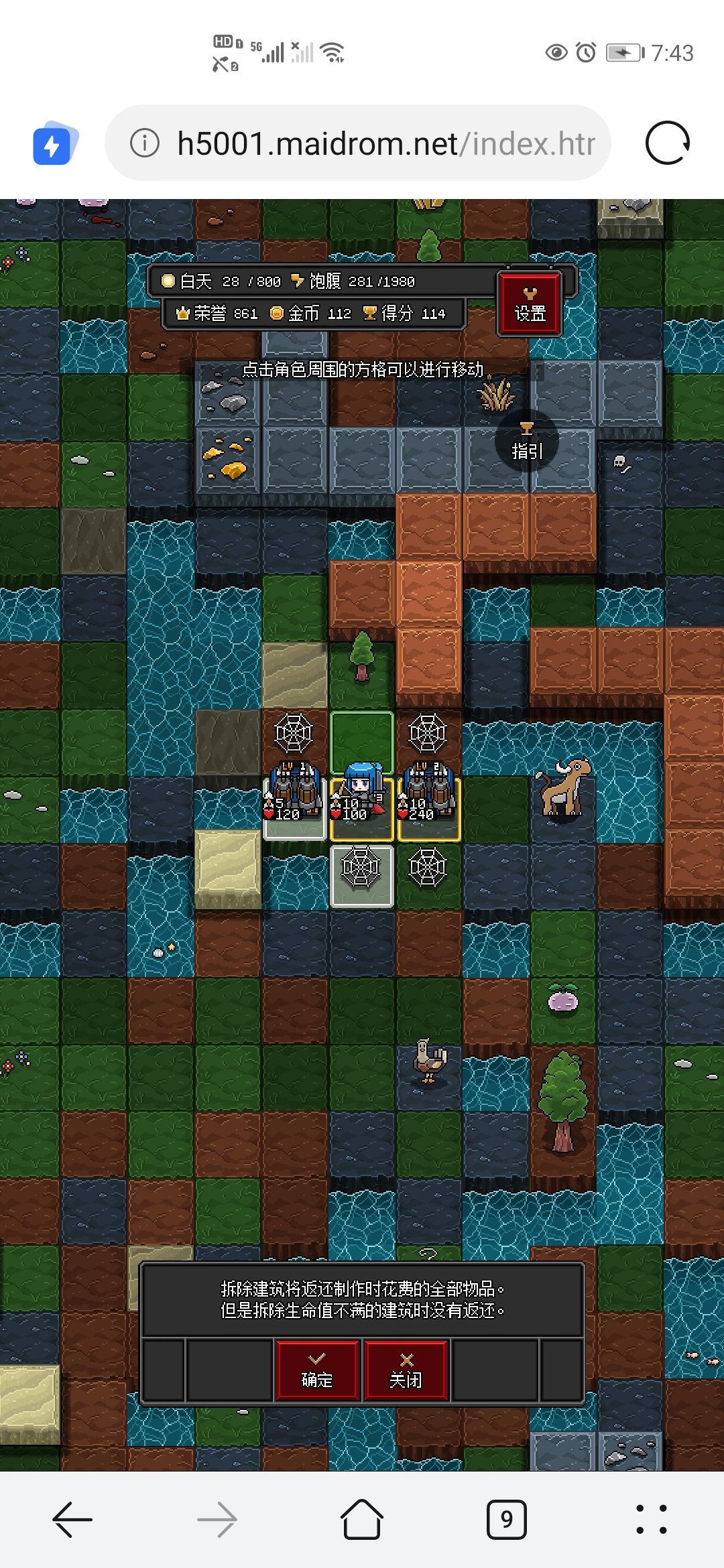 5、在研发科技的时候顺带将野外的BOSS(白色的茧就是)打了,可以在旁边造个箭塔帮打,打完修理好拆掉(没有掉血的建筑拆除会返还所有材料)。