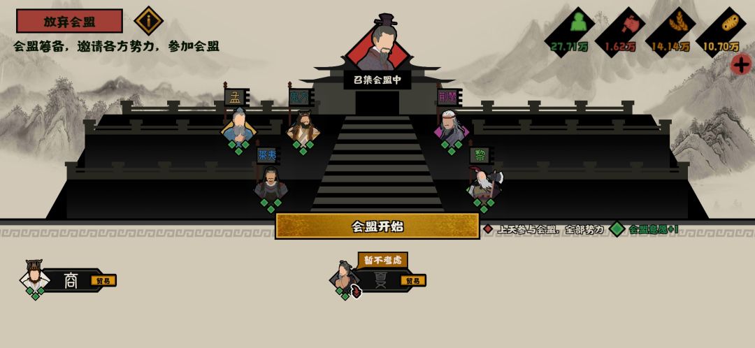开局占卜可以刷天命,先不用打其他国家,周边国家谁作恶再打