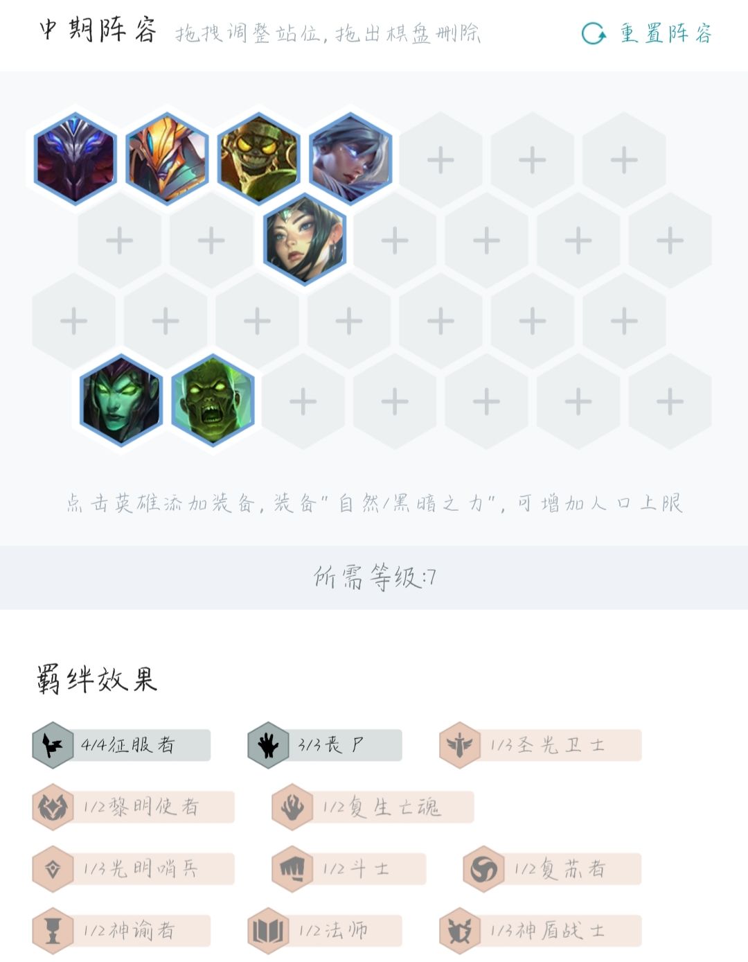 前期: 3圣光 2游侠 2征服者
