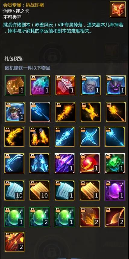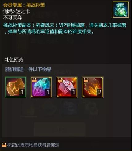 会员专属掉落中有机会获得非绑定的赤壁宝图碎片8、麒麟石、凤血石和金鹏翎毛。