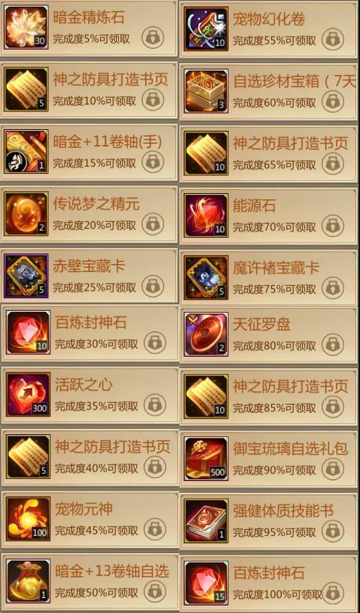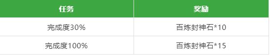 当成就完成30%、100%时,大家可以获得25个百炼封神石。