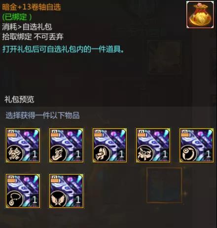 完成度达到15%和50%分别可以获得暗金+11卷轴(手)和暗金+13卷轴自选。可以快速为暗金道具精炼+13等级!