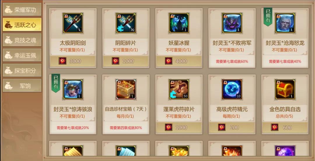 孙策—惊涛骇浪、刘表—沧海怒龙以及徐晃—不败将军大家还可以在【商店】-【其他】-【活跃之心】中兑换获取哦~