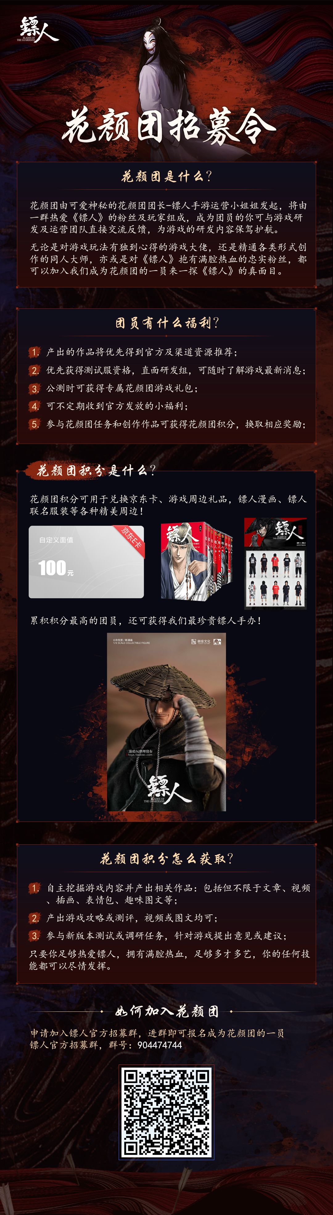 为此,团长将向所有对镖人充满热爱、肝脑涂地的镖客大人们发布一份花颜团招募令!详情如下: