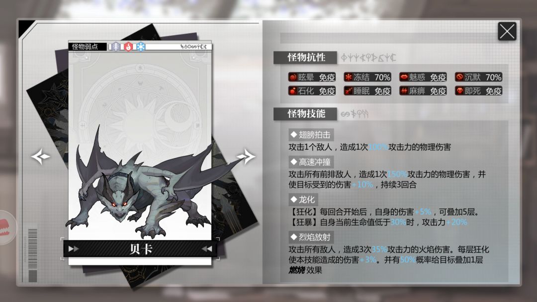 弱火物冰,8甲,初见时没有破盾手被暴打,于是紧急拉起南宫,破盾加debuff,1技能组配30蓝耗火属性破防技能