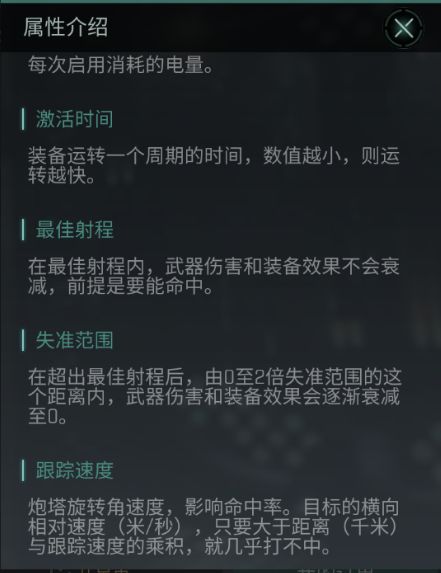 炮术武器所共有的特点是最佳射程、失准范围和跟踪速度。如果不考虑任何其它因素,那么只要目标在炮台的最佳射程内,就能造成较高的伤害,命中率100%;而在失准范围内的话,命中率及伤害倍率都是会随着距离的增加呈线性衰减的。