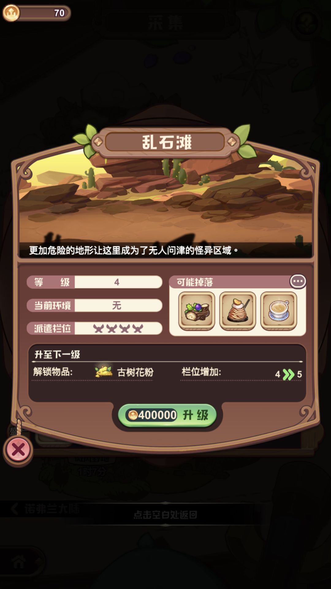 派遣时升级地点会自动加速到完成,如果你攒够了升级地点的金币不要急着升级,可以等重新开一波派遣再升级,就可以免费得到一波加速。