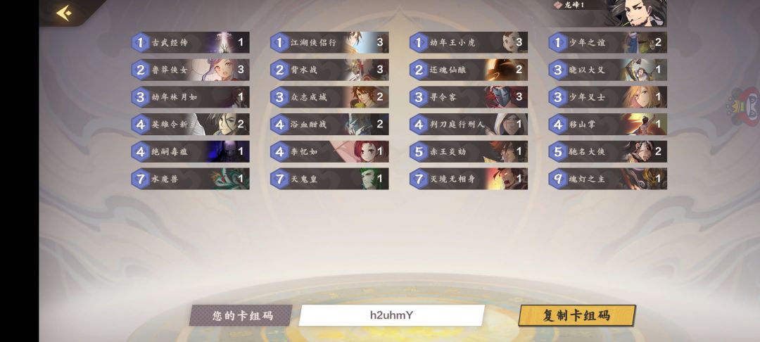 小月如,寻客令,驰名大侠都是前期强力部署,前期寻客令如果给王小虎加上身材,那真是对面的噩梦。啥?你想问小月如怎么获得?论坛有大佬有帖子发了如何白嫖,没拿到的小伙伴快去获取吧。你说驰名大侠5费啊,怎么能算前期卡啊,因为我这套土卡组,开始只要不是运气特别背,前三回合至少自己场面肯定能有至少2-3个部署以上的,这样驰名大侠减费,你说是不是变成低费卡了😉