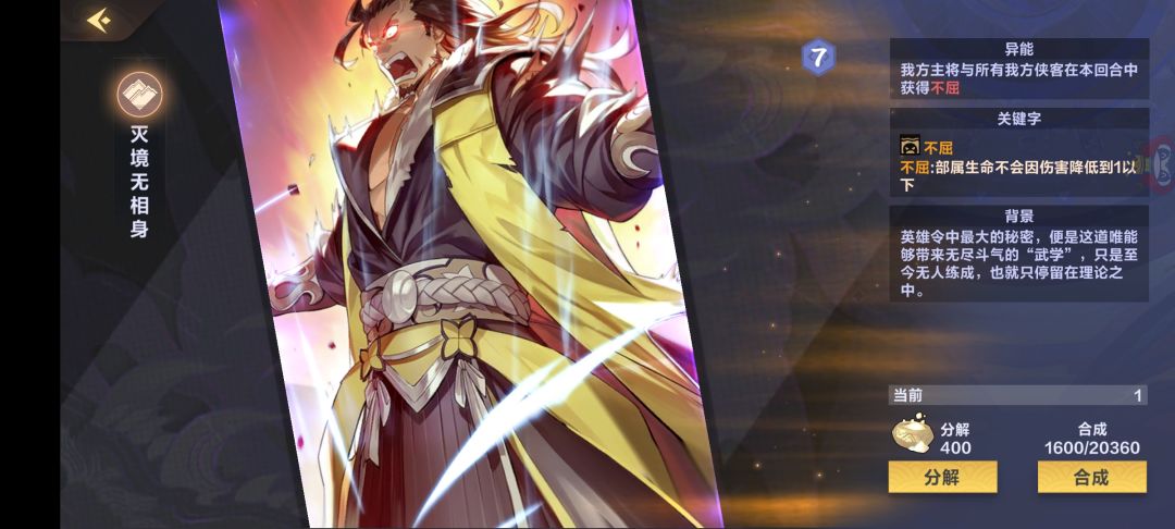 灭境这卡,不多说了,神卡,全体不屈,连主将都不屈,危机关头救命甚至瞬间逆转翻盘就靠它了,绝对的神卡!