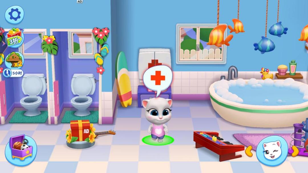 《汤姆猫总动员》的家庭小药箱位于卫生间边上,直接点一下小家伙们头上的红十字,就可以直接去到家庭小药箱前面。打开小药箱,小伙伴们就会发现里面有针筒、锤子、药罐等治疗工具和药品。需要注意的是,必须对症下药哦,切忌病急乱投医,只有这样小家伙们才能真正康复!