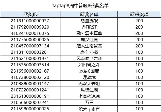 恭喜以下主公获得活动奖励,奖励会在7个工作日内发布到游戏ID邮箱内,请注意查收