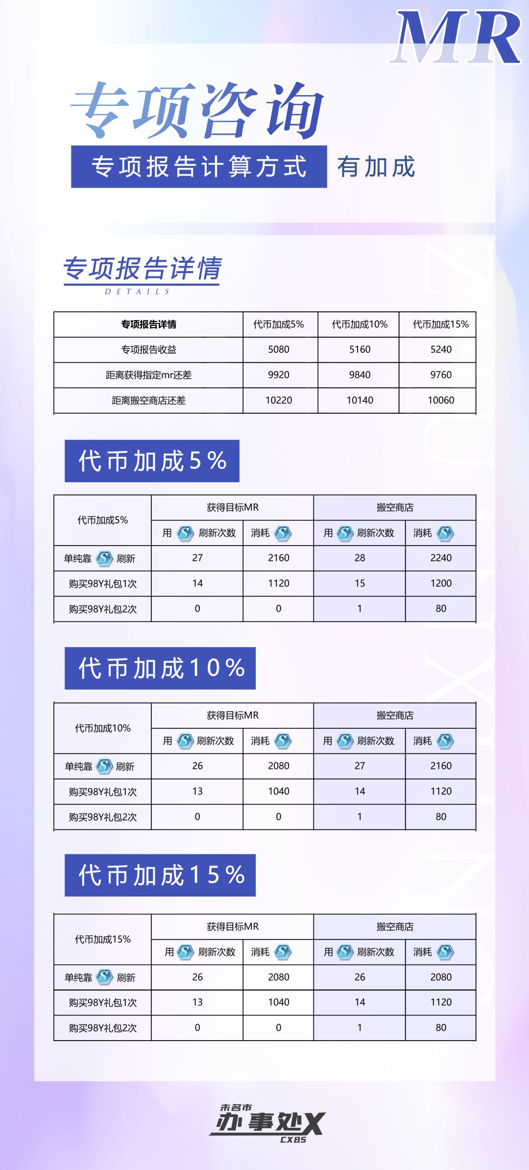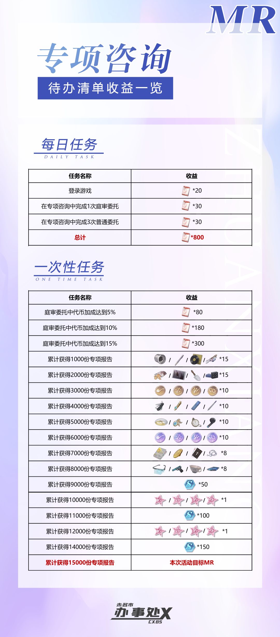 又是一期熟悉的专项咨询,在综合了莫医生和左律师的专项咨询情况后,cxbs尝试做了一版专项咨询mr通用版本,如无意外,以后专项咨询就以此版攻略为准。