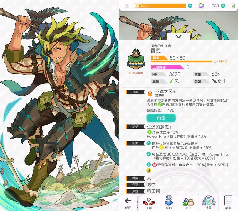 常态40%外加10combo触发60%风属性增伤,是她胜任风连击队长的倚仗。配合自身连击次数翻倍的特效很容易保持100%增伤。